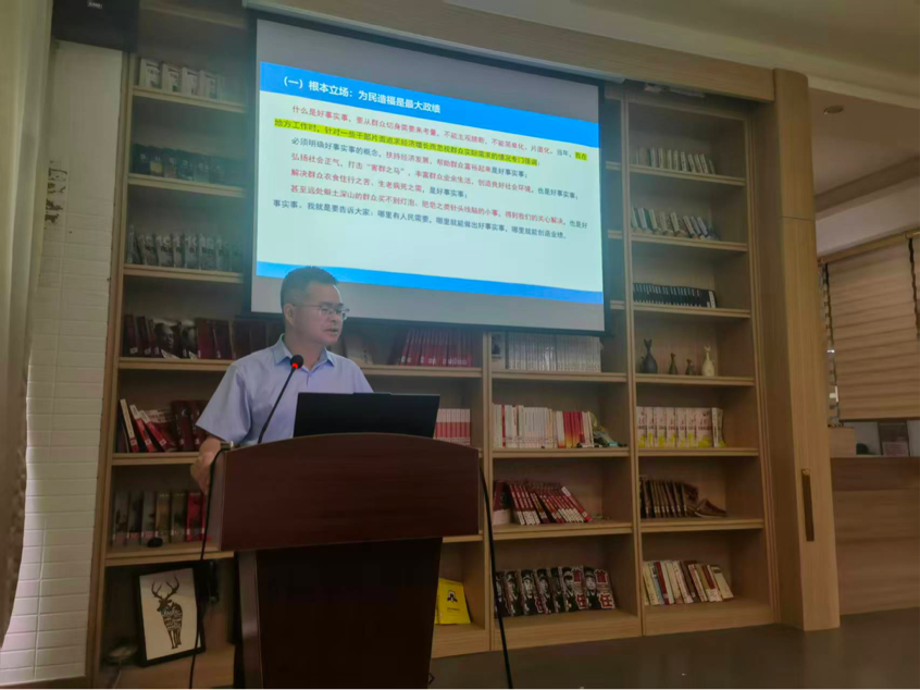 刘有升教授以“为人民出政绩,以实干出政绩”为题展开讲授。他指出,正确政绩观不仅是党员干部的必修课,也是每一位教师和学生骨干的行动指南。教师要把“为党育人、为国育才”作为最大政绩,杜绝“重形式轻实效、重显绩轻潜绩”的倾向;学生骨干则要牢记“服务同学、锻炼自我”的初心,不搞花架子、不求虚名声。他结合自身咨政报告获省领导批示、主持国家社科基金等丰富经历,强调:真干才能出真绩,实为方能有实位。