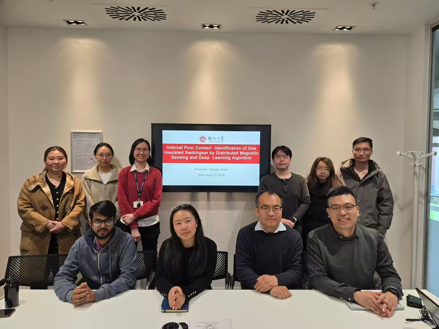 在思克莱德大学访问期间,关向雨副教授应邀作了题为《Internal Poor Contact Identification of Gas Insulated Switchgear by Distributed Magnetic Sensing and Deep Learning Algorithm》和《Contact Failure Diagnosis for GIS Plug-In Connector by Magnetic Field Measurements and Deep Neural Network Classifiers》的学术报告,并与在场师生就接触缺陷诊断技术、电气设备无损检测等议题进行了深入交流。
